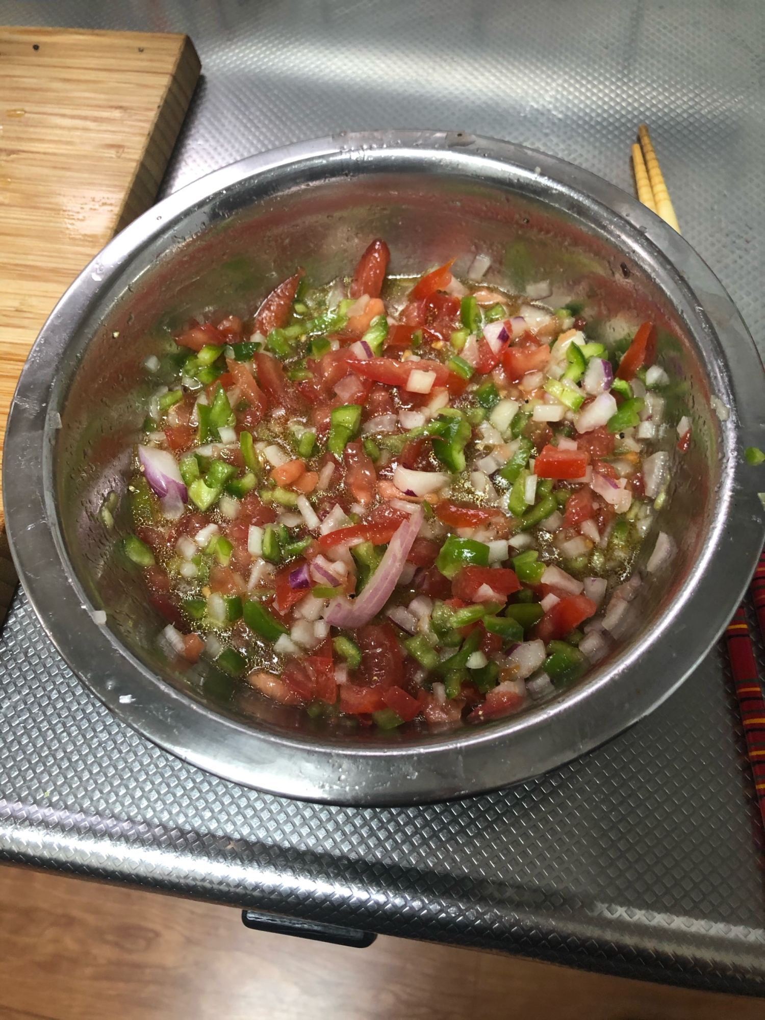 簡単手作りトマトサルサ 簡単に作れてさまざまな料理に使える万能調味料! 温野菜のドレッシングや肉や魚料理のソースにも! (★作りやすい分量分約214円) 玉ねぎとピーマンはみじん切りにします。 ボウルに1とAを混ぜ合わせれば 作り方 1 野菜はみじん切りにして洗ったビンの中へ入れる。 ニンニクは特に細かく(すりおろしても良い) 2 野菜を入れたビンに調味料を入れてスプーンで良く混ぜる。 3 冷蔵庫で2時間ほどなじませて出来上がり。 4 タコライスに、パスタにピザなどいろいろ合います。 入れる野菜もお好みでパプリカやセロリなど加えても。 5 トマト缶でも作れますが、色味がトマト、ピーマン、パクチーはよく洗っておきます。 1 玉ねぎはみじん切りにし、水に5分さらしペーパーで水気をきっておきます。 2 トマトはヘタを取り半分に切ります。 スプーンで種を取り1cmの角切りにします。 3 パクチーは根を切り落とし、みじん切りにします。 ピーマンはヘタと種を取り、みじん切りにします。